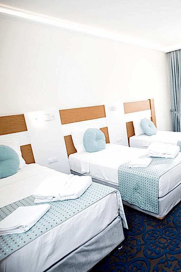 Aile Odası, geniş ve konforlu yapısıyla ailenizle unutulmaz bir tatil deneyimi sunuyor. Modern tasarımı ve özenle seçilmiş mobilyalarıyla hem şıklığı hem de rahatlığı bir arada bulunduran bu odada, sevdiklerinizle keyifli anlar geçirebilirsiniz. Oda, geniş yaşam alanı, rahat yataklar ve fonksiyonel özellikleriyle uzun süreli konaklamalar için ideal bir seçim. Ebeveynler ve çocuklar için ayrı alanlar sunan Aile Odası, tüm aileniz için huzurlu bir ortam sağlıyor.
